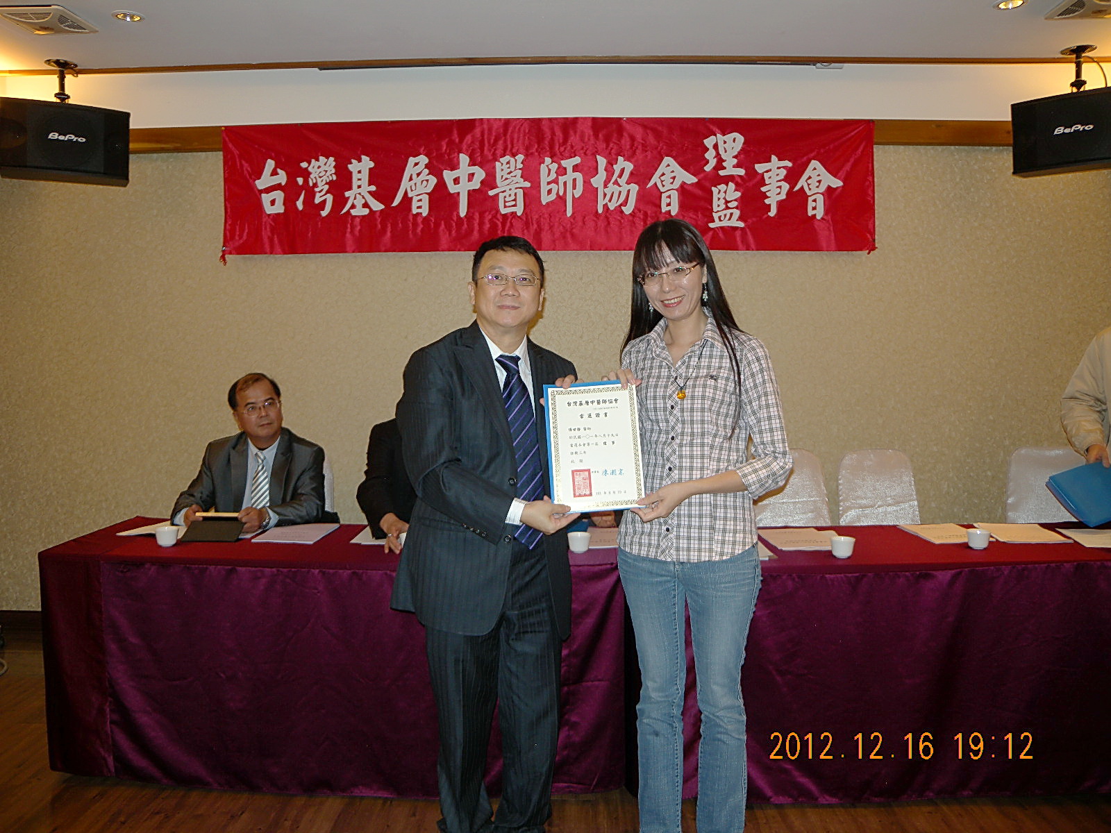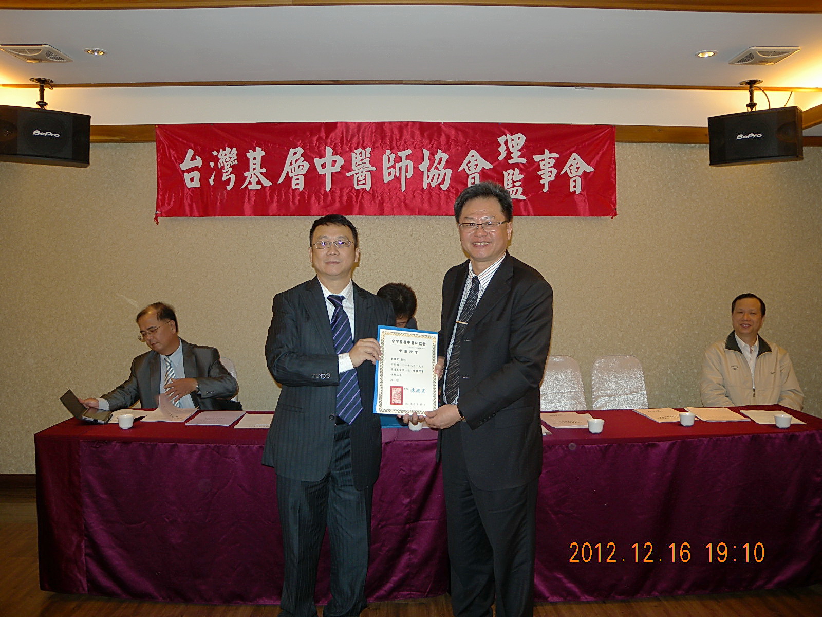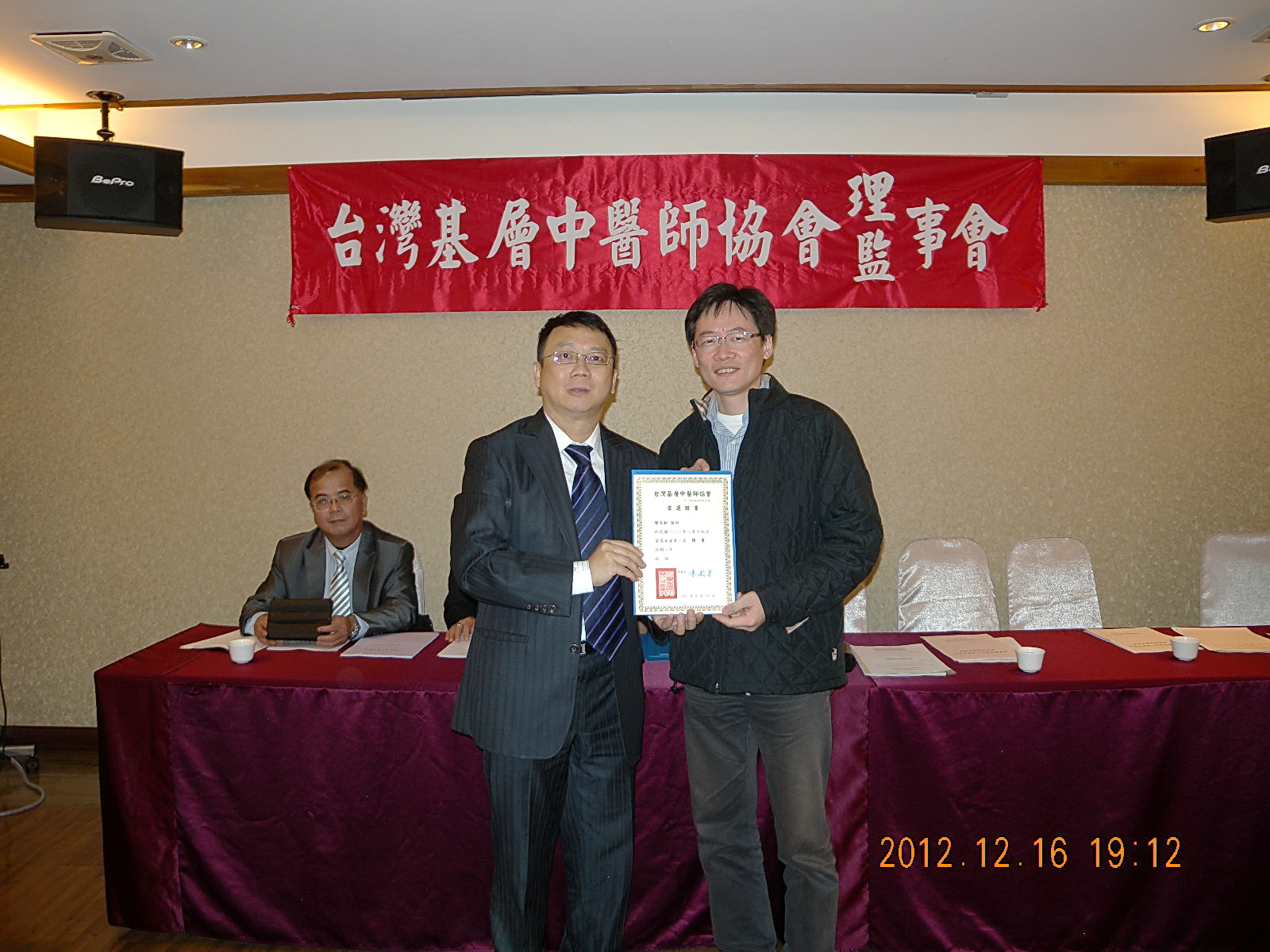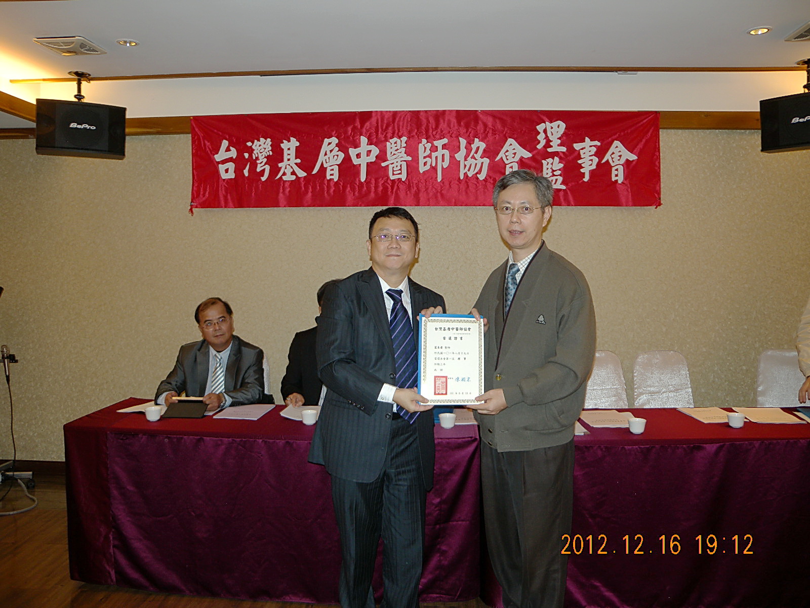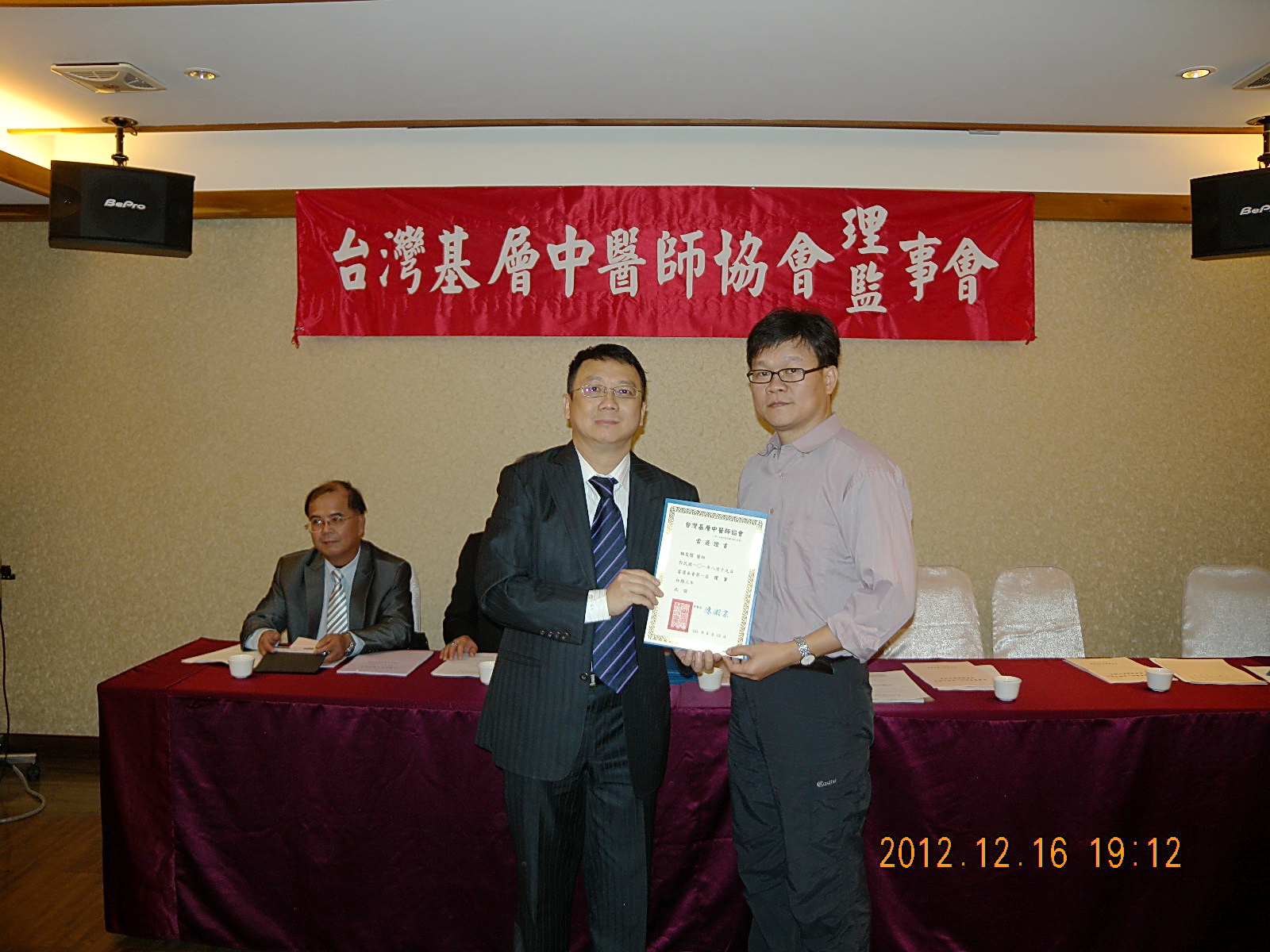 101.12.16頒發第一屆理監事當選證書