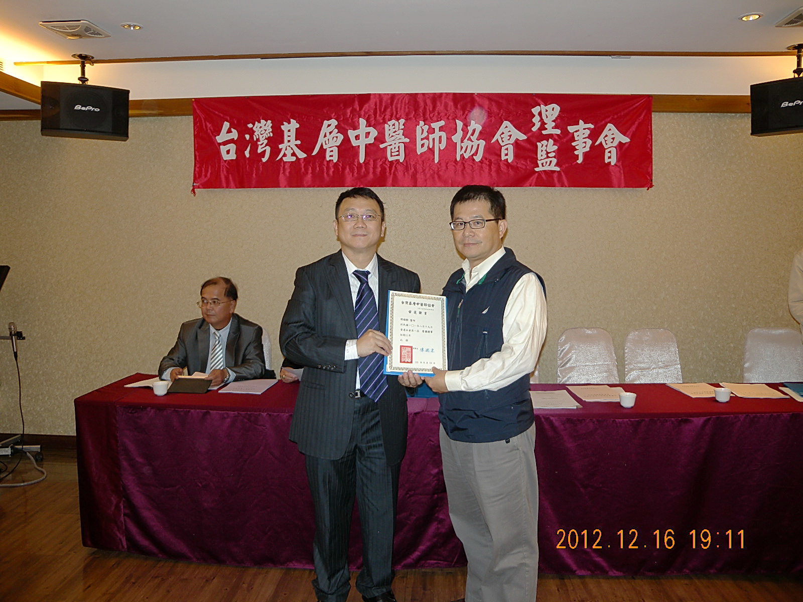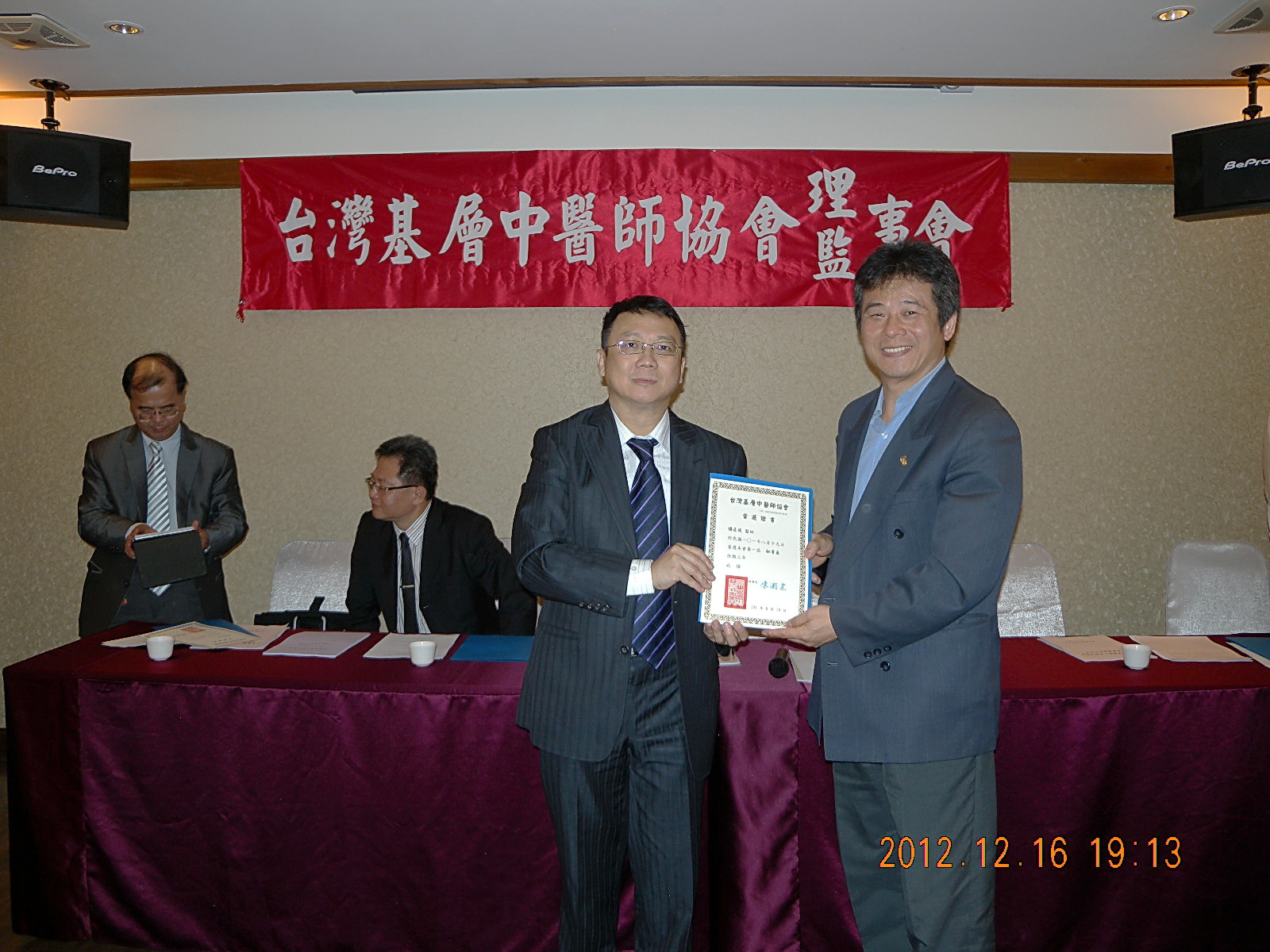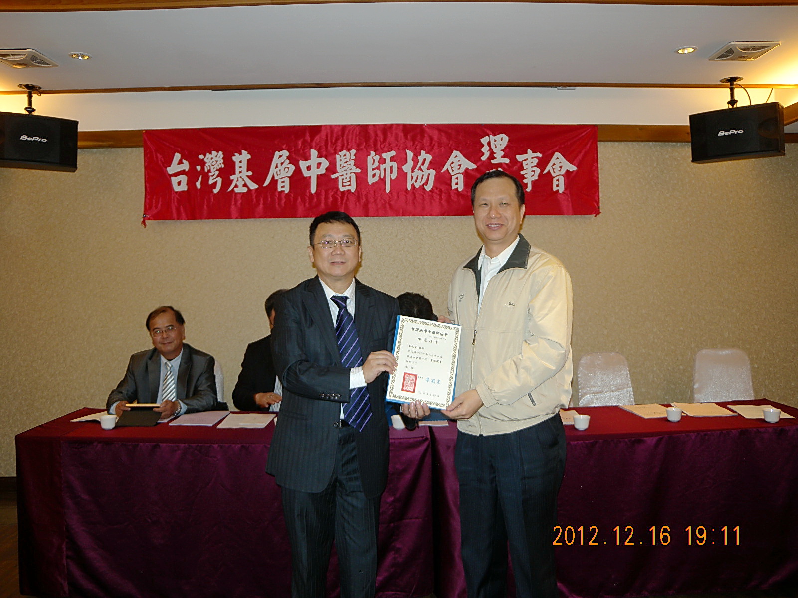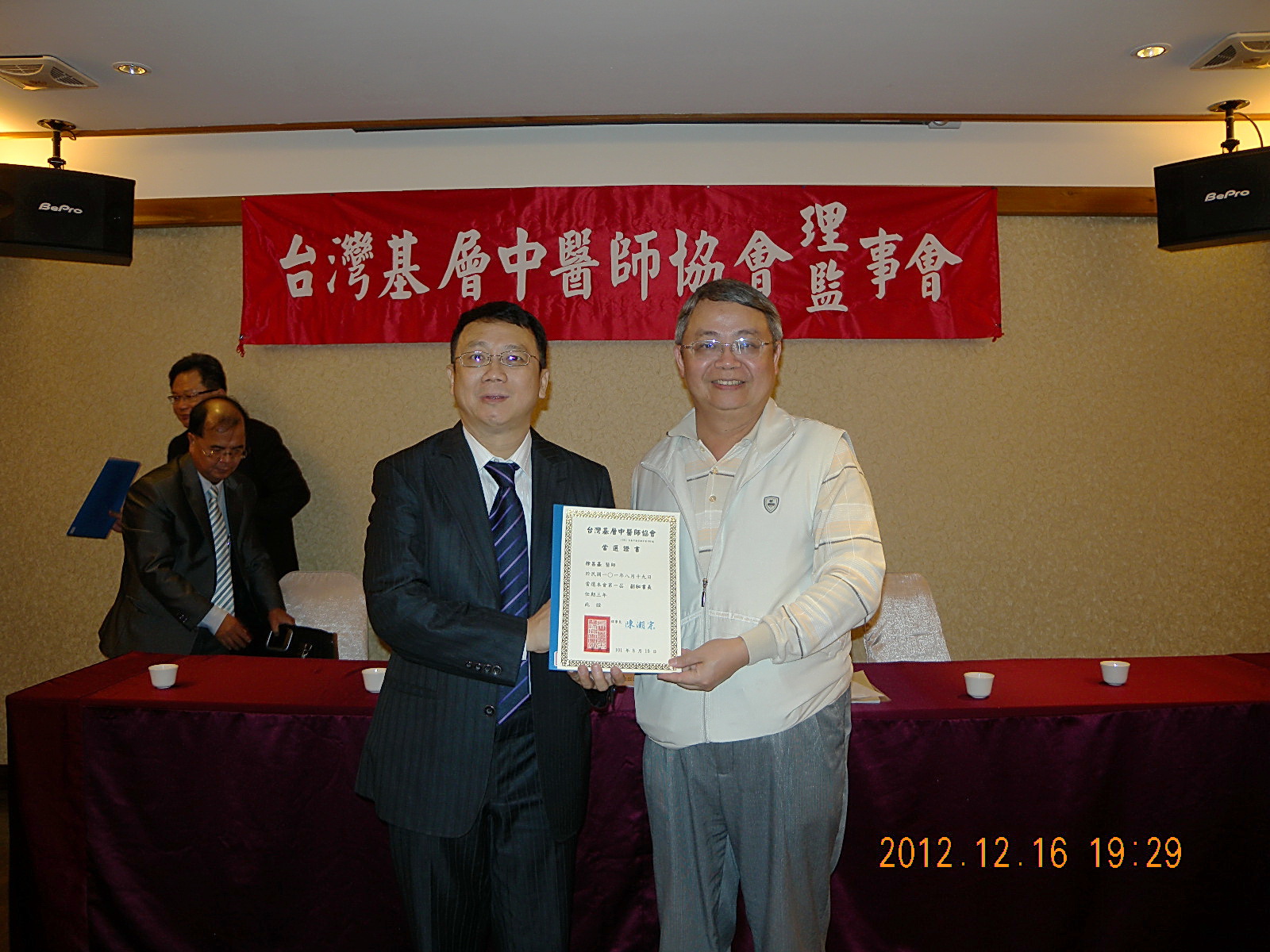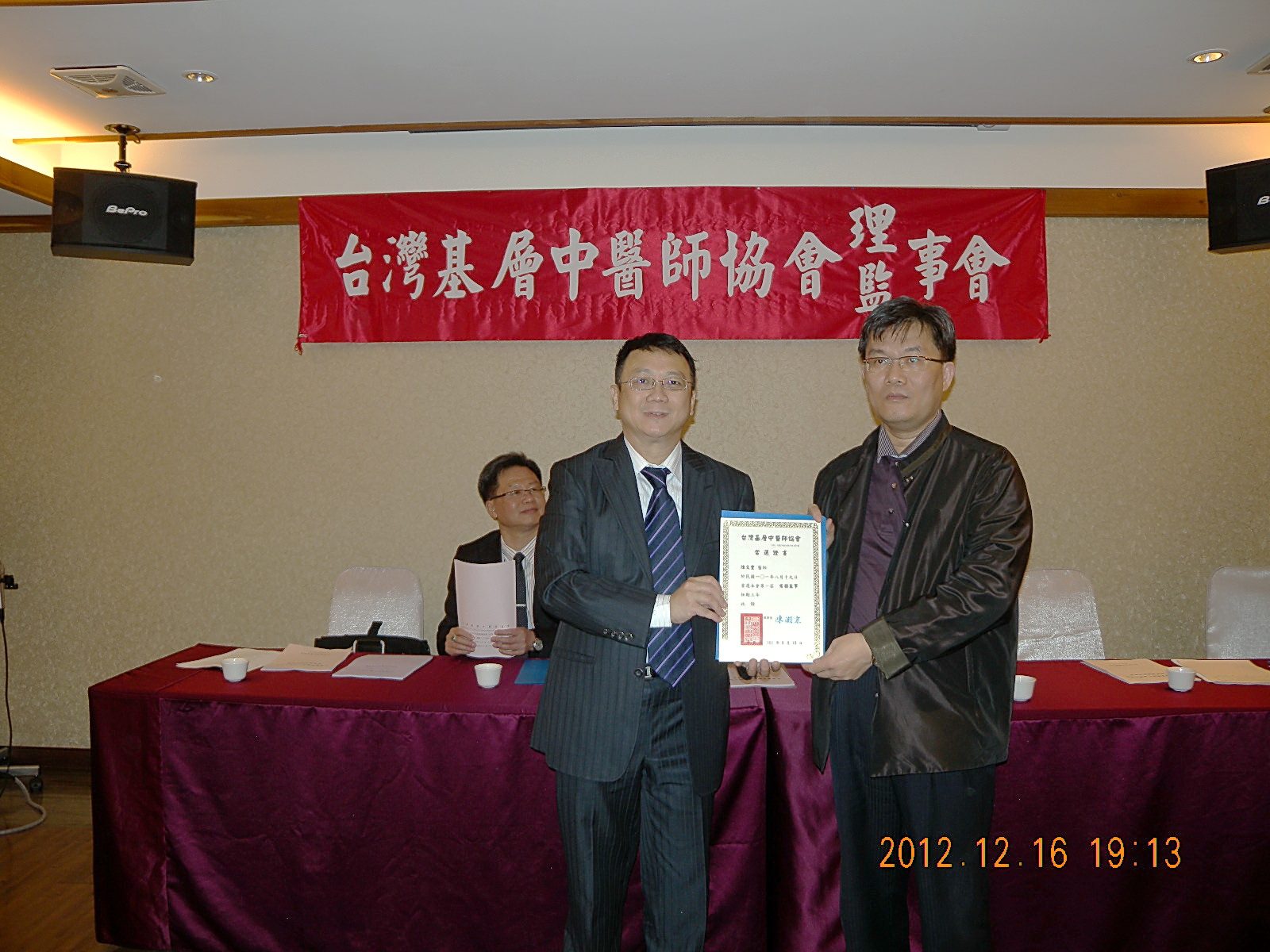 101.12.16頒發第一屆理監事當選證書