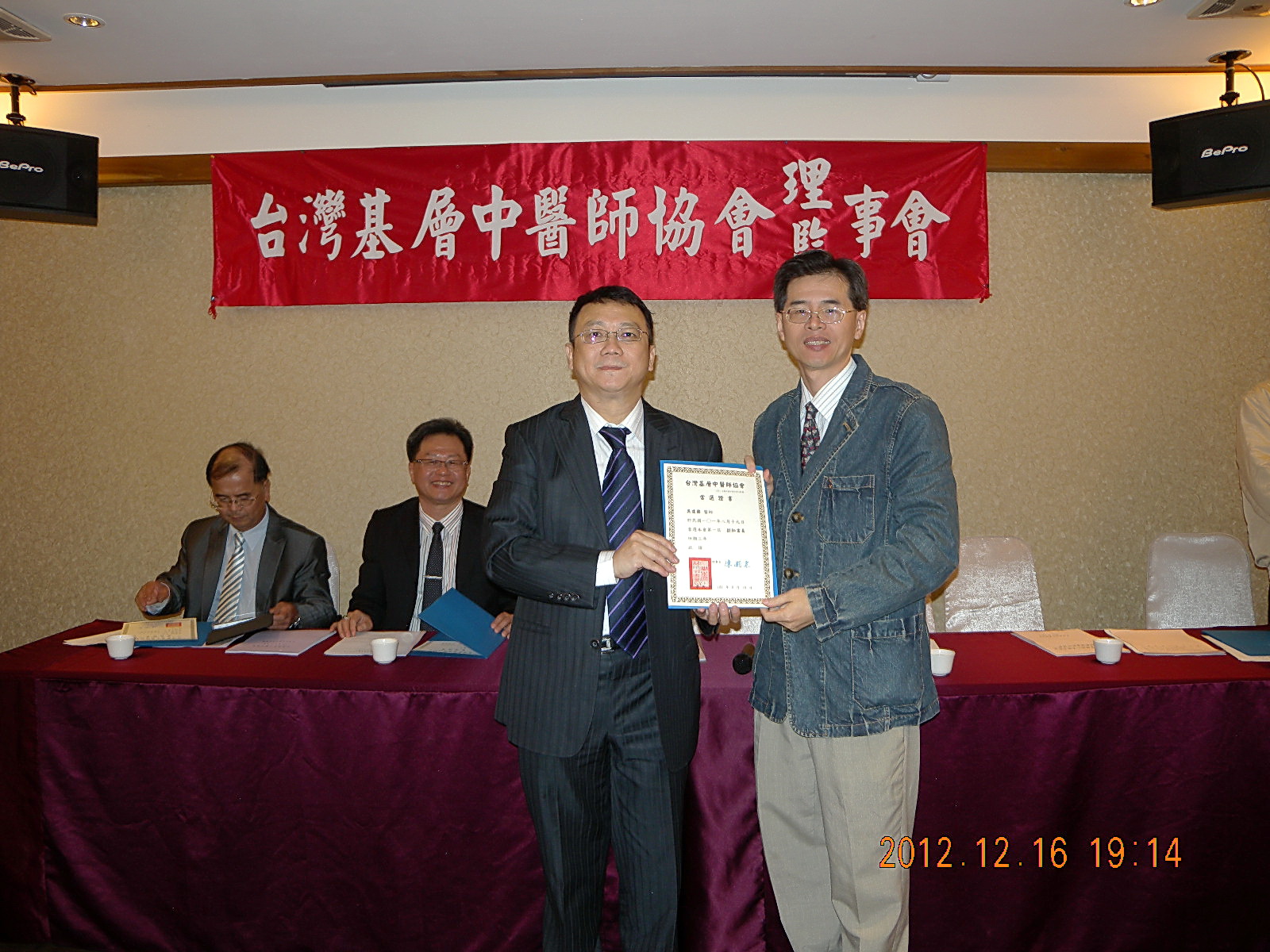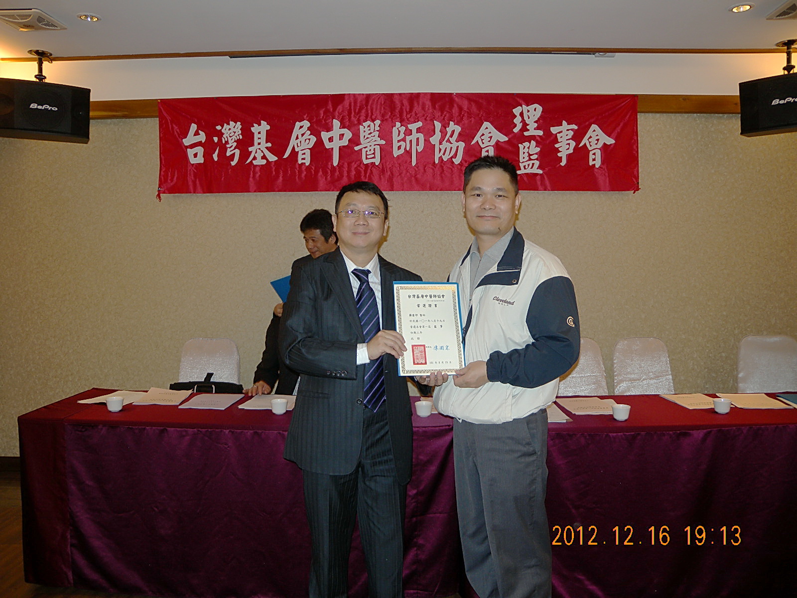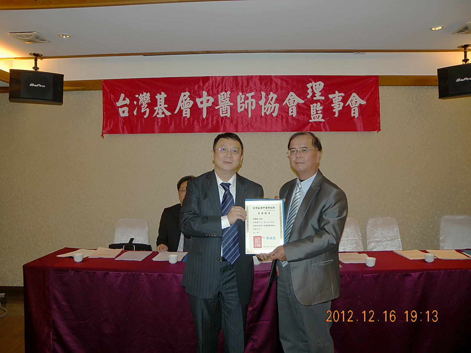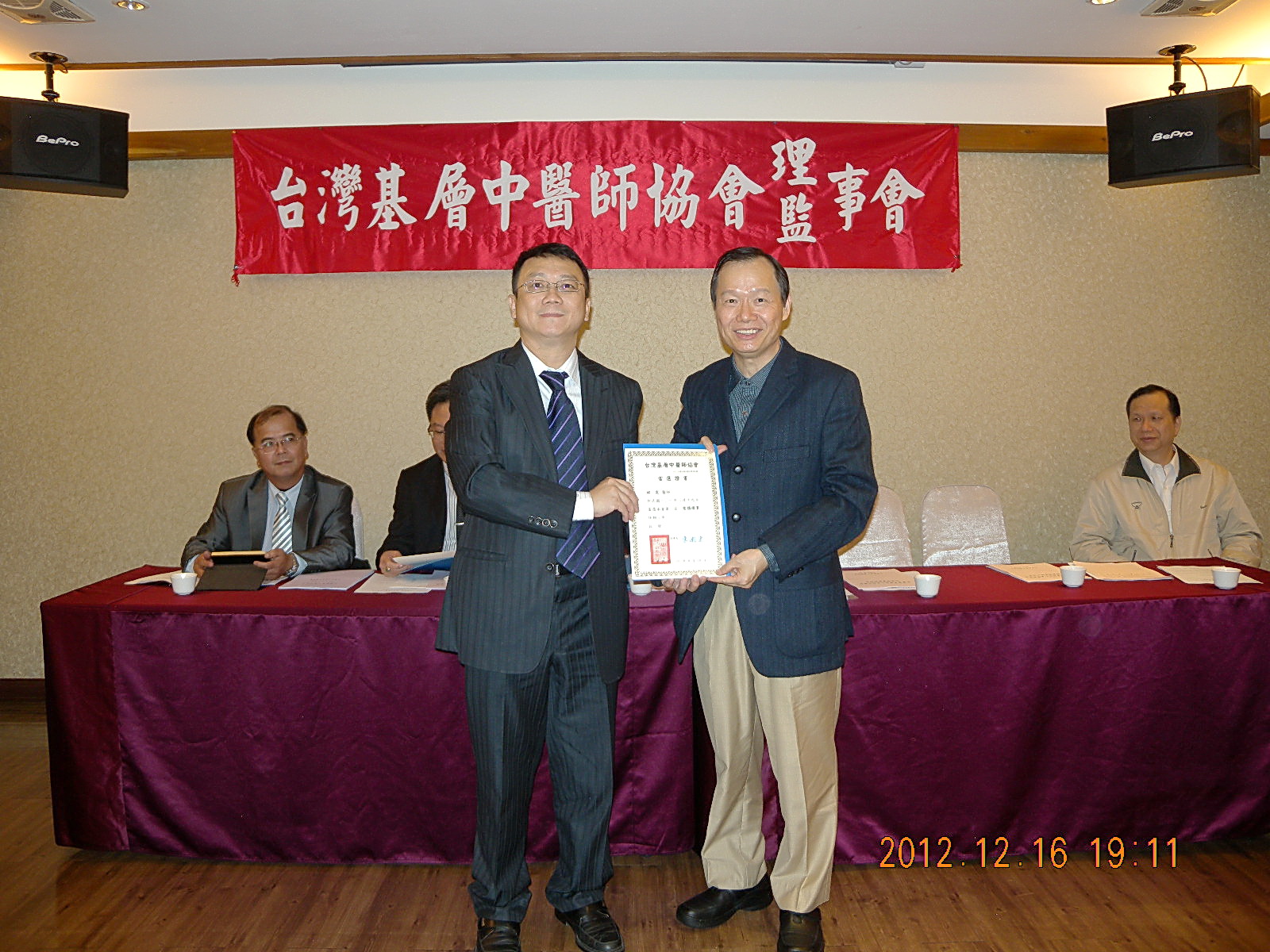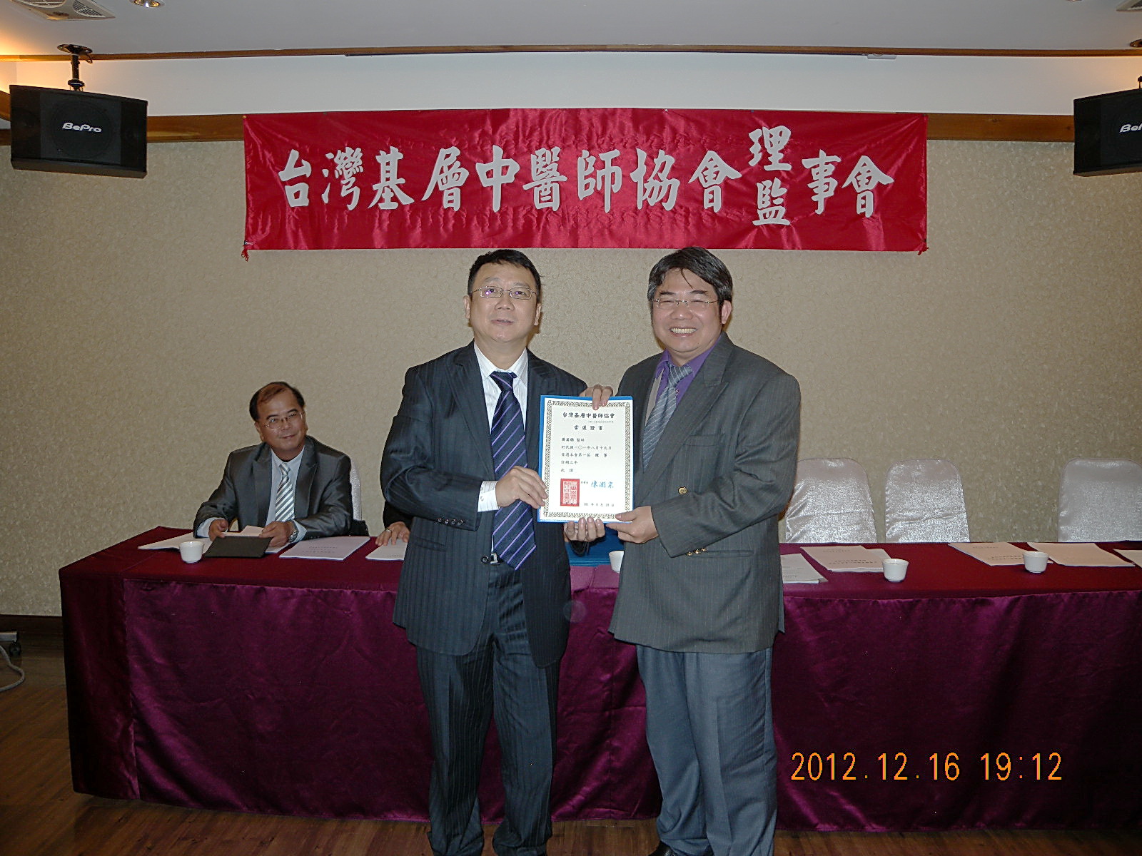 101.12.16頒發第一屆理監事當選證書